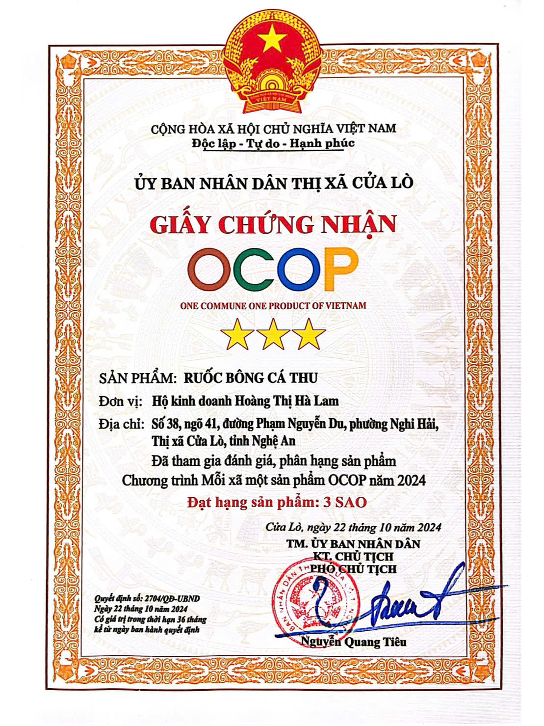 Hải sản Hà Lam: là thương hiệu đặc biệt, mang hương vị Cửa Lò. Hải sản Hà Lam chuyên sản xuất, chế biến các sản phẩm ruốc bông Hải sản mang đậm hương vị đặc trưng của Thị xã biển Cửa Lò nói riêng và của tỉnh Nghệ An nói chung